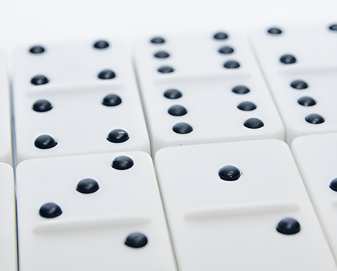 Домино с выпуклыми точками – развивающая настольная игра для слабовидящих и незрячих людей. На белые фишки нанесены чёрные выпуклые хорошо осязаемые точки, благодаря которым существенно упрощается процесс игры для людей с нарушенным зрением.