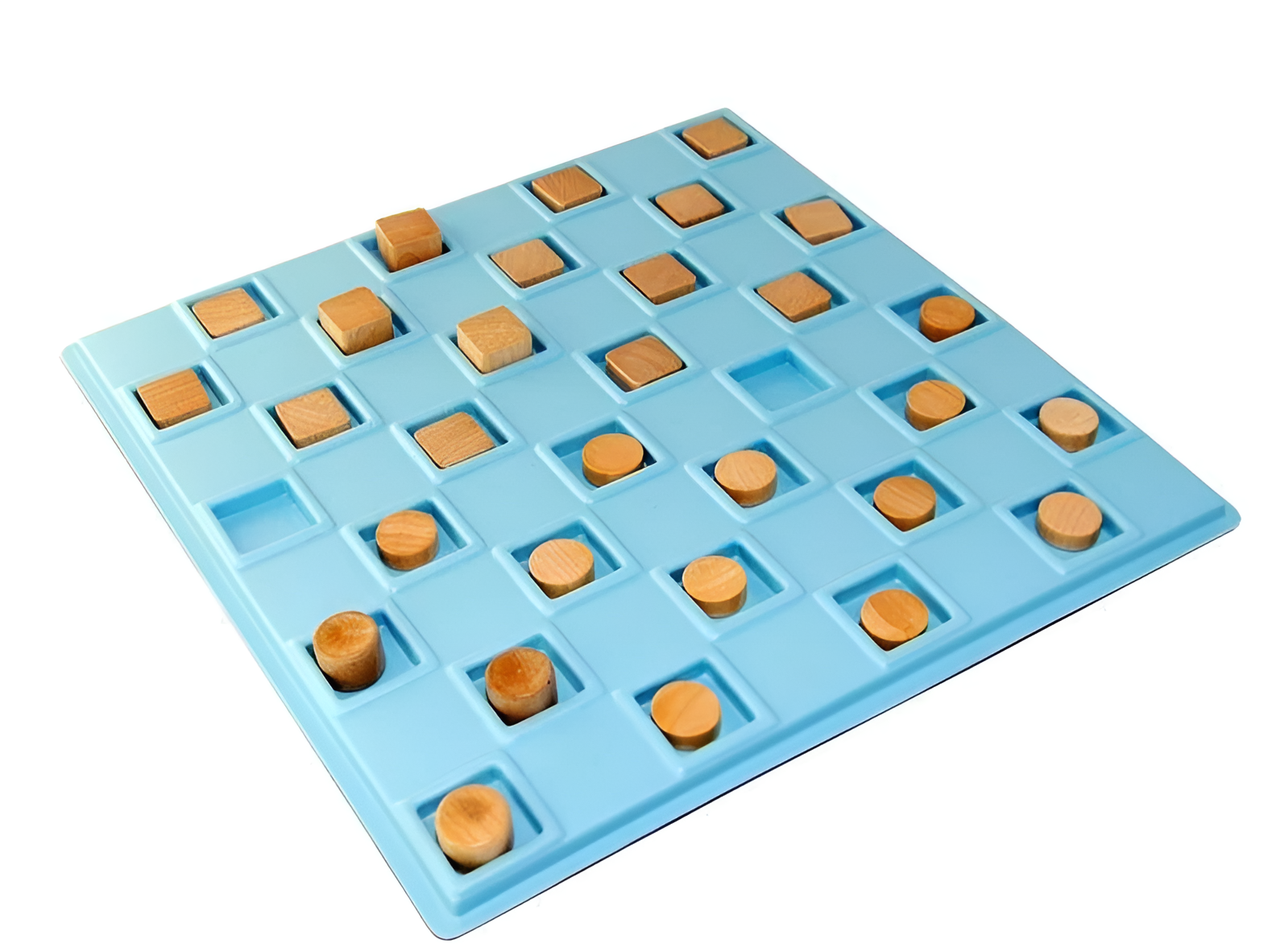 Развивающая настольная игра для слабовидящих и незрячих людей. Формовая пластиковая доска с прочным дном с шагом в один квадрат. Шашки сделаны из дерева, круглые и квадратные. «Шашки-дамки» двойной величины. Доска изготовлена из прочного пластика и имеет углубления для фишек.